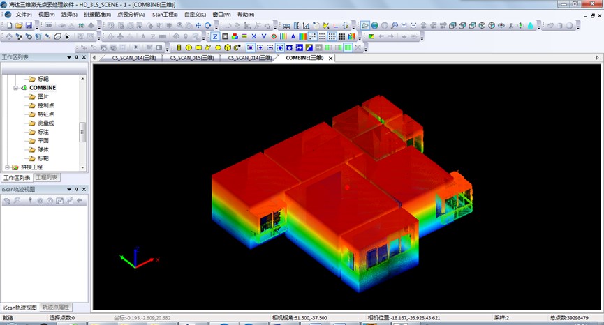 根据海达数云提供的技术方案,整个量房设计流程在实现点云无标靶自动拼接后,点云格式能与主流设计软件AutoCAD、3DMax、Revit进行兼容,最终可以输出U3D漫游效果、3D模型、Cad原始平面图、施工图及耗材明细表等数据成果。