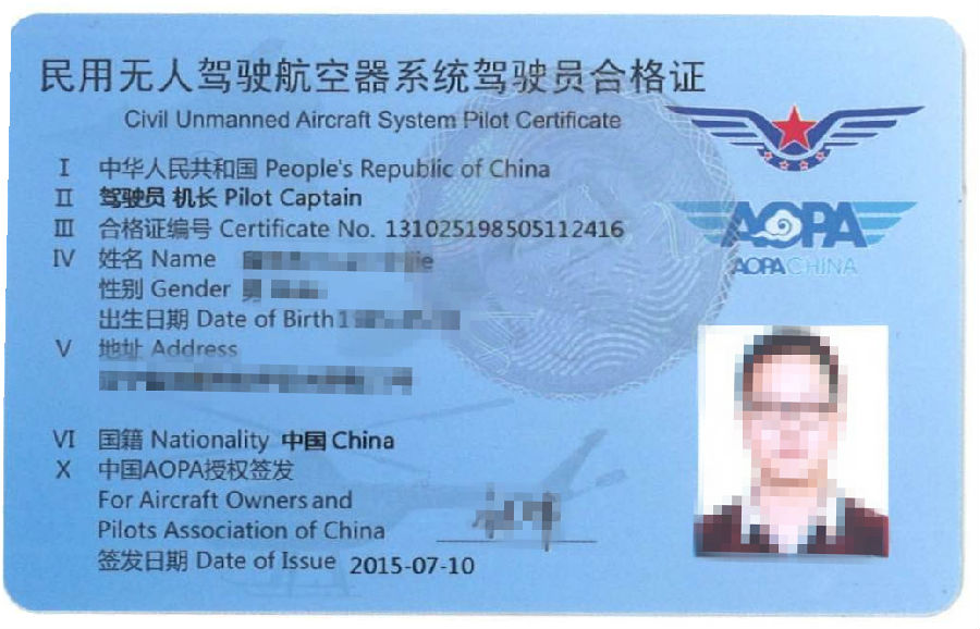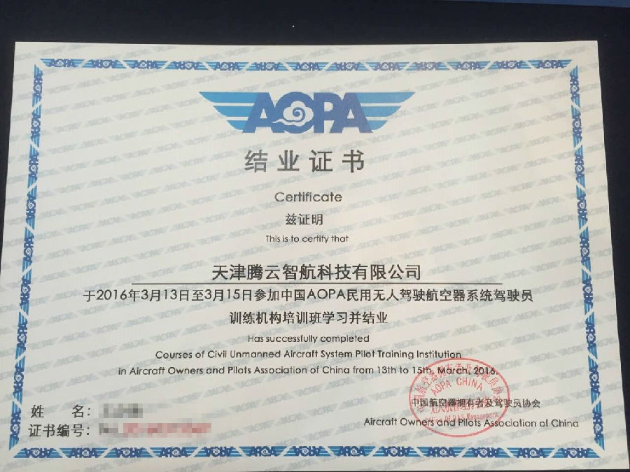 中国AOPA民用无人驾驶航空器系统驾驶员训练机构培训班结业证书