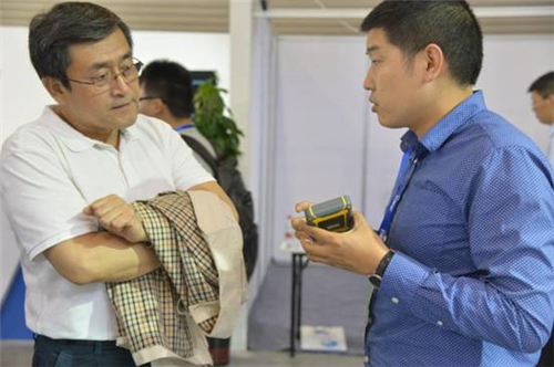 现场工作人员细心给参展嘉宾讲解Qbox8高精度北斗魔盒