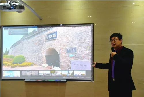 为了让与会教师近距离感受室内定位技术,在室内定位演示环节中,联睿电子技术人员手中拿着定位标签,通过大屏幕投影系统界面,向与会教师展示室内定位系统的厘米级定位精度,在场教师看完演示后频频称赞,并与技术人员进行了沟通交流。