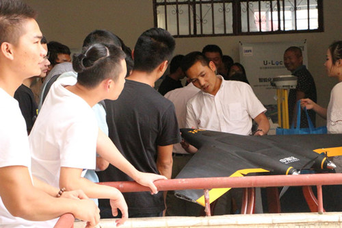 会议现场,不仅有各实训室解决方案的精彩演讲,室内定位设备、无人机、三维激光扫描仪等高尖设备更是赢得众人围观。