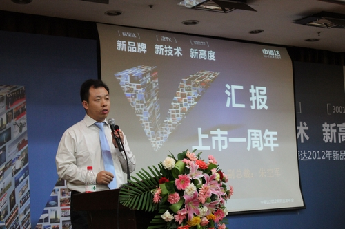 赵友兴秘书长为发布会致辞,并对中海达的产品进行了充分的肯定,朱空军副总裁对十几年来一直支持中海达的嘉宾们表示感谢,并汇报了中海达上市一周年的成绩——2011年尽管外环境经济形势不好,但中海达仍然取得31.79%的净利润增长。