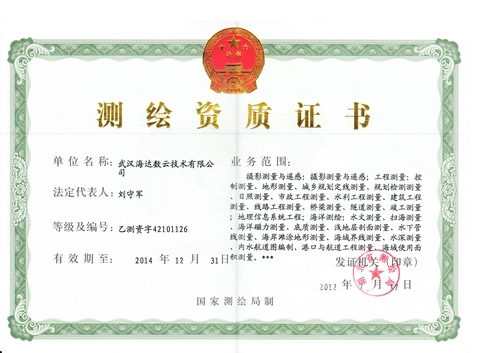 7月17日,武汉海达数云技术有限公司获得测绘乙级资质证书,业务范围包括摄影测量与遥感、工程测量、地理信息系统工程、海洋测绘。获取该资质证书后,海达数云将可在文物考古测绘、工程测量、海洋测量等领域开展业务。