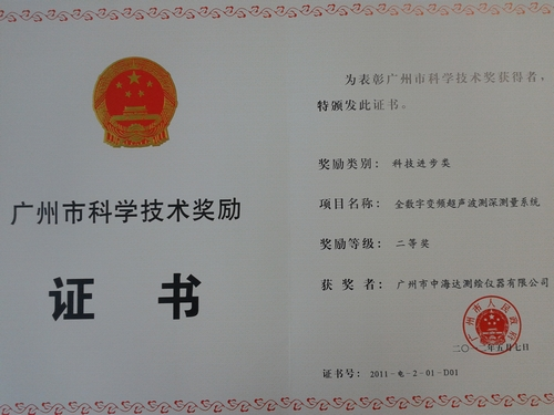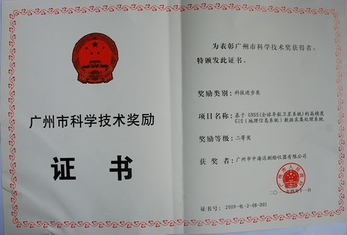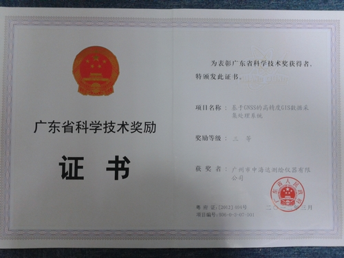 广州市中海达测绘仪器有限公司承担的“基于GNSS的高精度GIS数据采集处理系统”科技成果,获得广东省科学技术三等奖;“全数字变频超声波测深测量系统”科技成果,获得广州市科学技术二等奖;广州中海达卫星导航技术股份有限公司2011年还被认定为广州市创新型(试点)企业。
