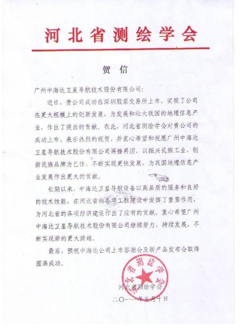 河北省测绘学会秘书长姚承宽先生特为此次会议发来贺信