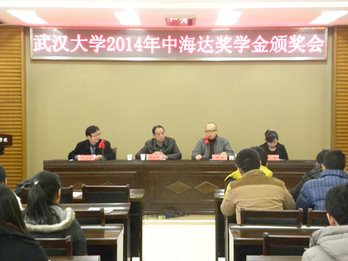 12月18日,武汉大学“中海达奖学金”颁奖仪式在武汉大学遥感信息工程学院举行,武汉大学党委副书记、副校长王传中,研究生工作部副部长胡静出席了颁奖会,广州中海达卫星导航技术股份有限公司副总裁胡炜出席了颁奖仪式,并为获奖学生颁奖。