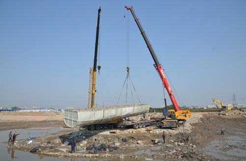 11月14日10时,伴随着两台起重机的轰鸣,经过加固处理后的慈溪潮塘江元代沉船被整体起吊至专用运输车上,运至慈溪市博物馆老馆广场专门搭建的工棚内,并于14时左右顺利安放到位。至此,历时近四个月的潮塘江元代沉船现场保护与整体搬迁工作圆满完成。
