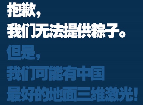 由于我们专注于三维激光领域,忽略了民生家常,无法给您提供鲜美可口的粽子,对此,我们深感抱歉。在此,谨代表海达数云全体员工向您表示最诚挚的歉意。