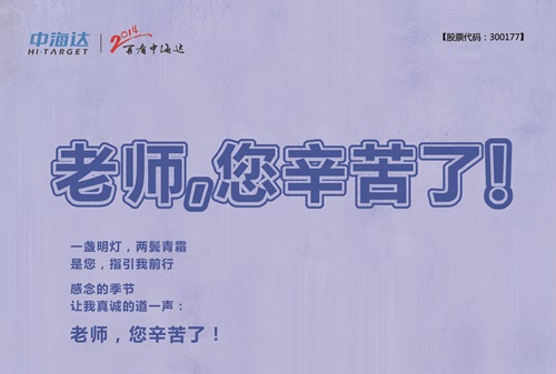 尊敬的老师:中海达恭祝您节日快乐,身体健康,万事如意!