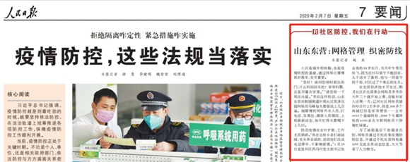 充分用好基层网格员队伍,对疫情期间往来东营市的人员,直接通过网格通app采集录入信息并同步到东营网格化系统中,改变了疫情防控初期基层干部手动登记造册的方式,有效减轻了基层工作负担。东营网格员通过手机收集、交流各类疫情防控动态信息的方式被《人民日报》(2020年02月07日07版)刊载。