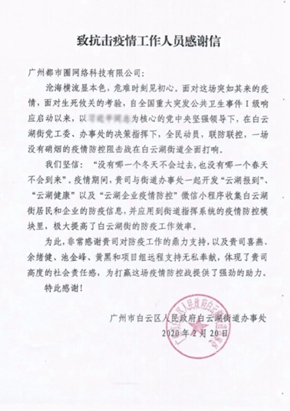 都市圈研发的“网格化疫情联防联控大数据一体化平台”,充分利用云平台便利和时空大数据技术,切实解决了基层防控难题。平台在防控期间显实效,并在日前先后收到了来自东营、顺德、白云湖等多地的感谢信,得到了相关单位的认可。