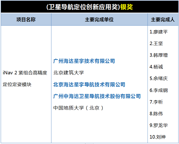 ▲ “主要完成单位”中加粗单位为中海达及其所属子公司