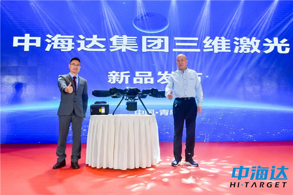 ▲ 中海达集团董事长廖定海(右)、海达数云总经理陈海佳(左)为新品揭幕